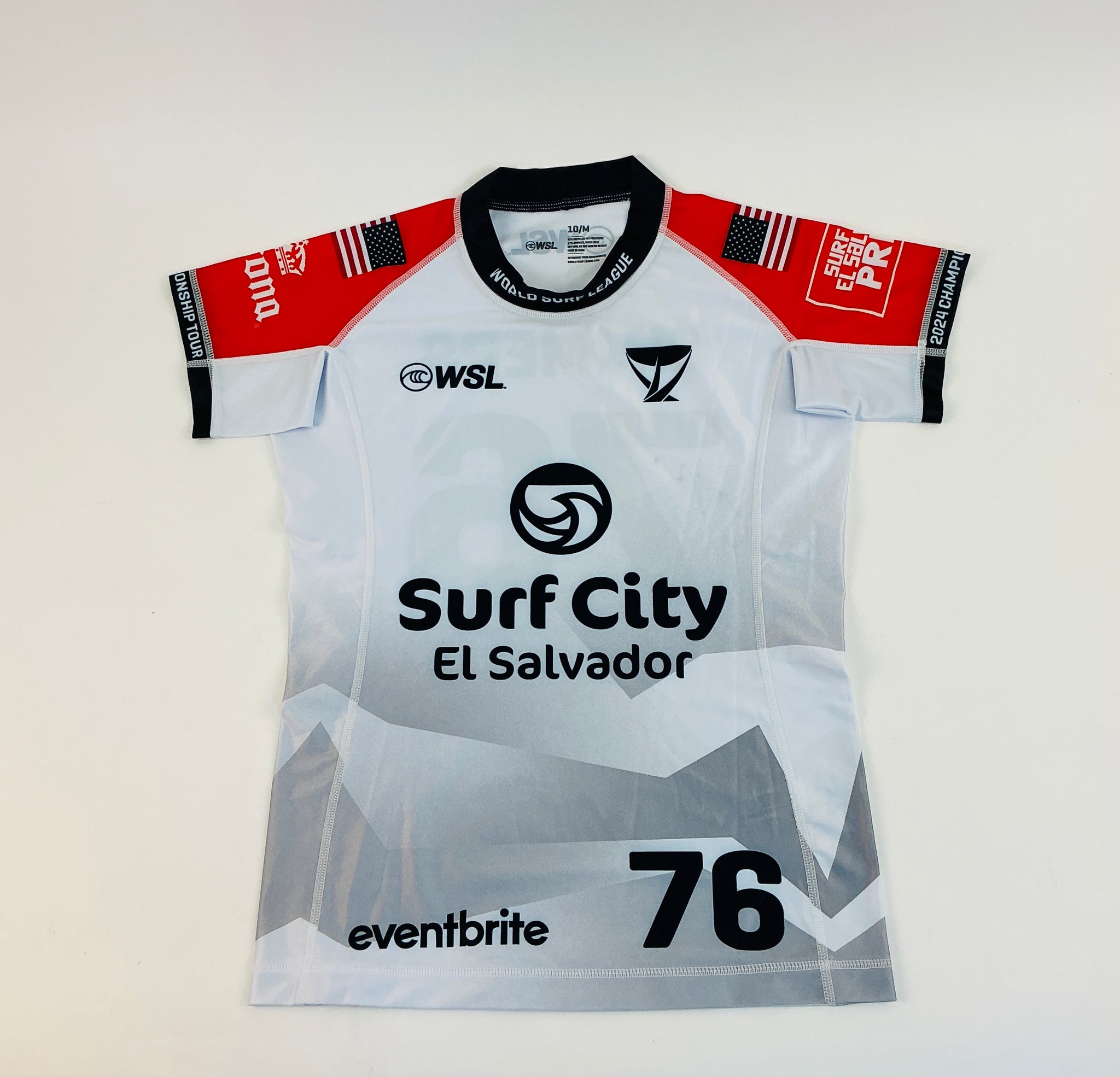 An autographed, authentic competition issued jersey for 2024 World Champion (and youngest women's world champion ever) Caitlin Simmers from the 2024 El Salvador Pro.
