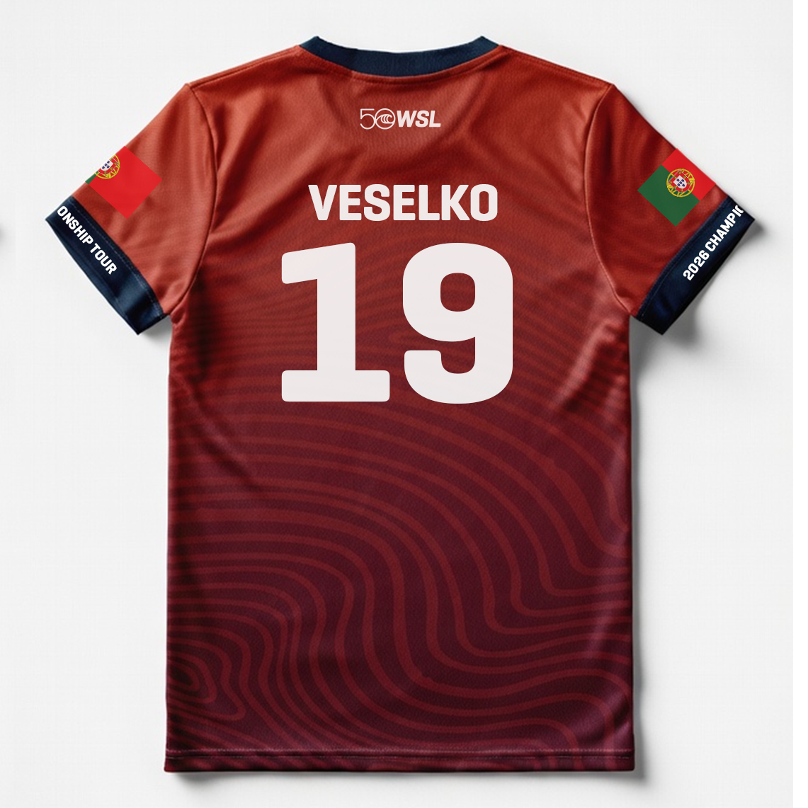 - Front graphic: WSL 50 anniversary logo and Championship Tour emblem