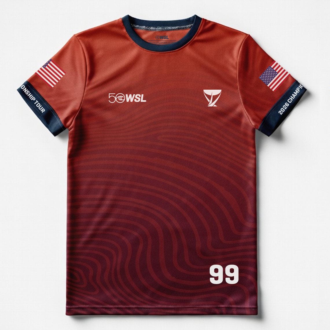 - Front graphic: WSL 50 anniversary logo and Championship Tour emblem