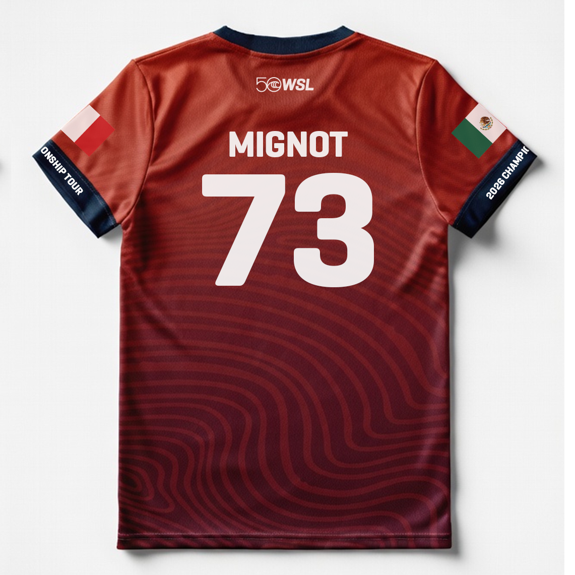 Support Marco Mignot with the Marco Mignot 2026 Official Jersey, part of the official 2026 Championship Tour celebrating 50 years of WSL.