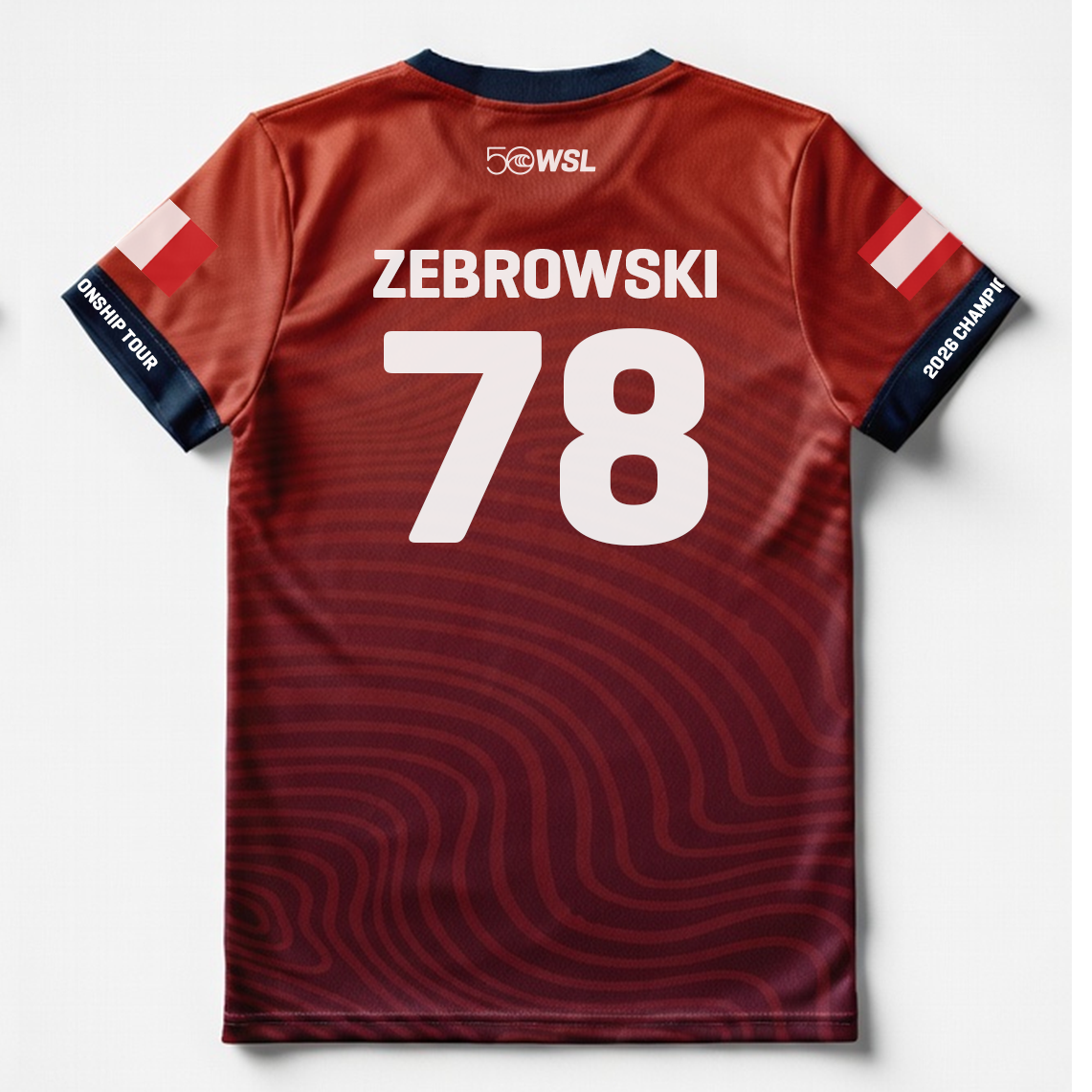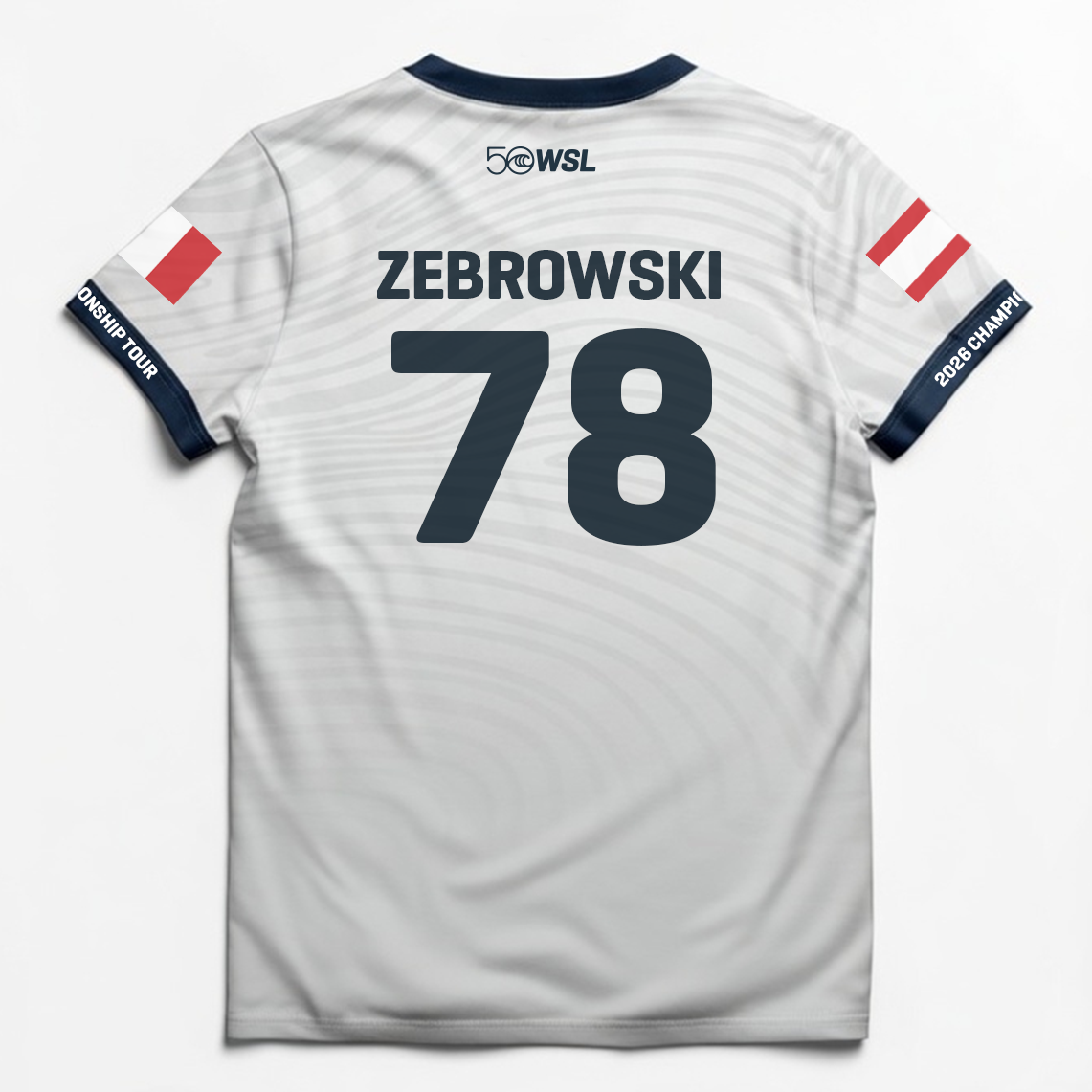 - Front graphic: WSL 50 anniversary logo and Championship Tour emblem