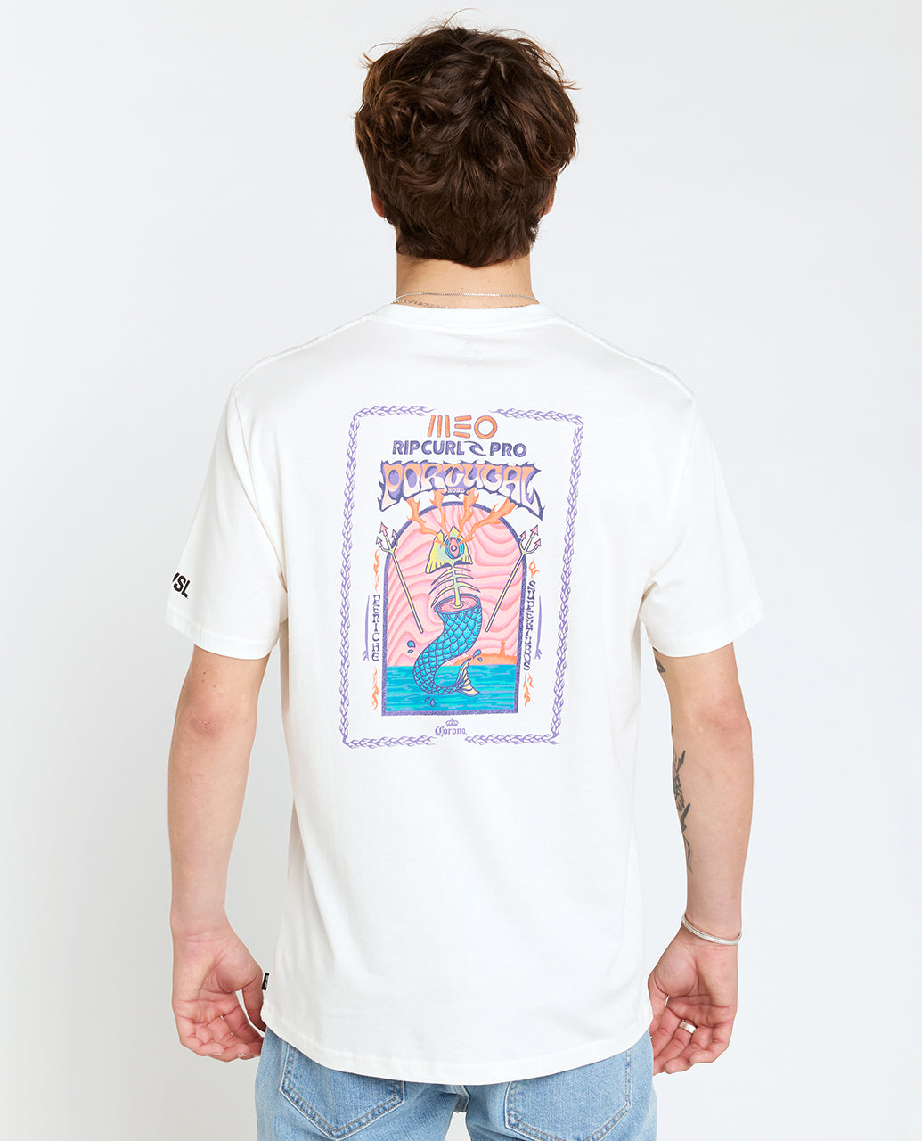 Limited edition short sleeve tee featuring official 2025 MEO Rip Curl Pro Portugal artwork.