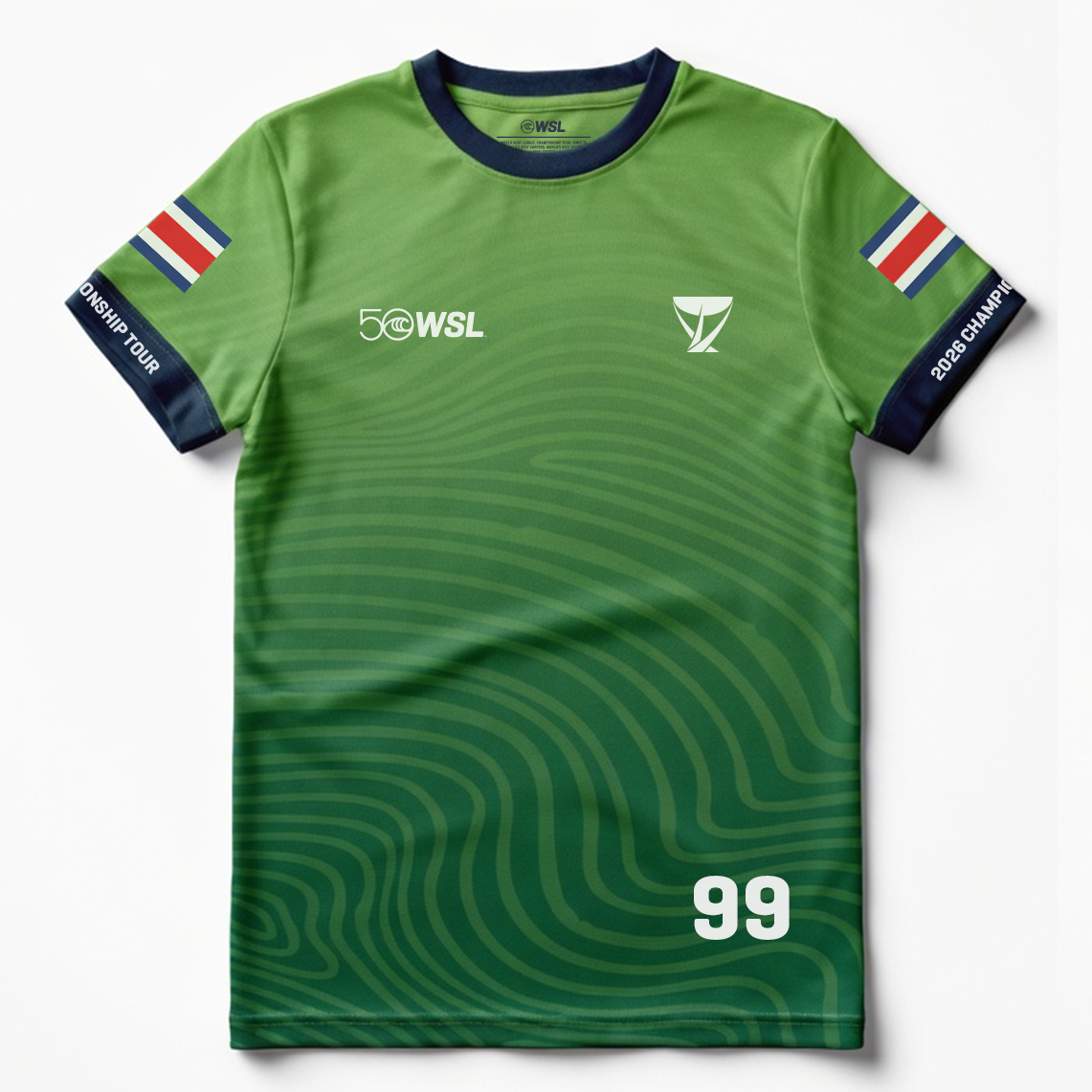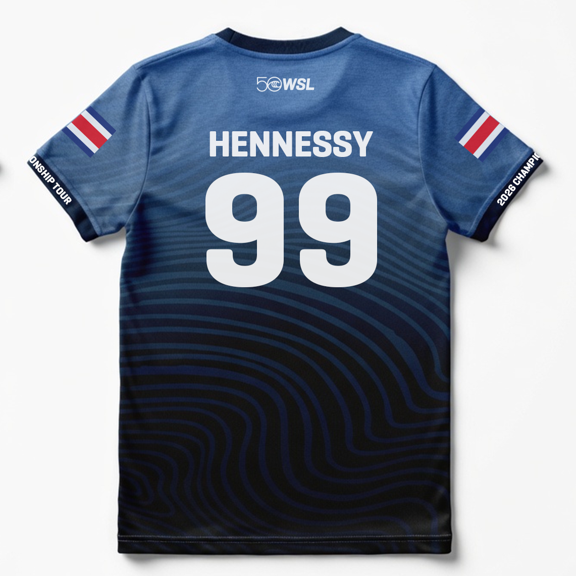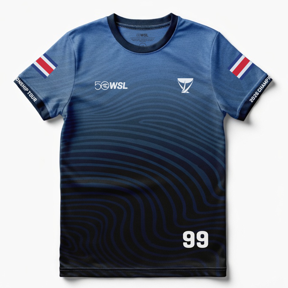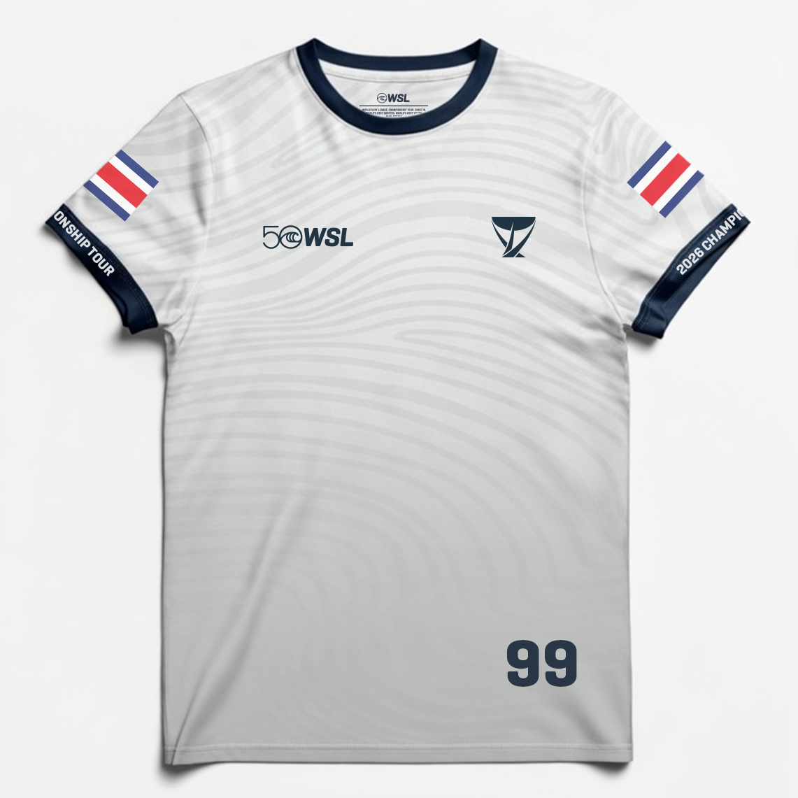 - Front graphic: WSL 50 anniversary logo and Championship Tour emblem