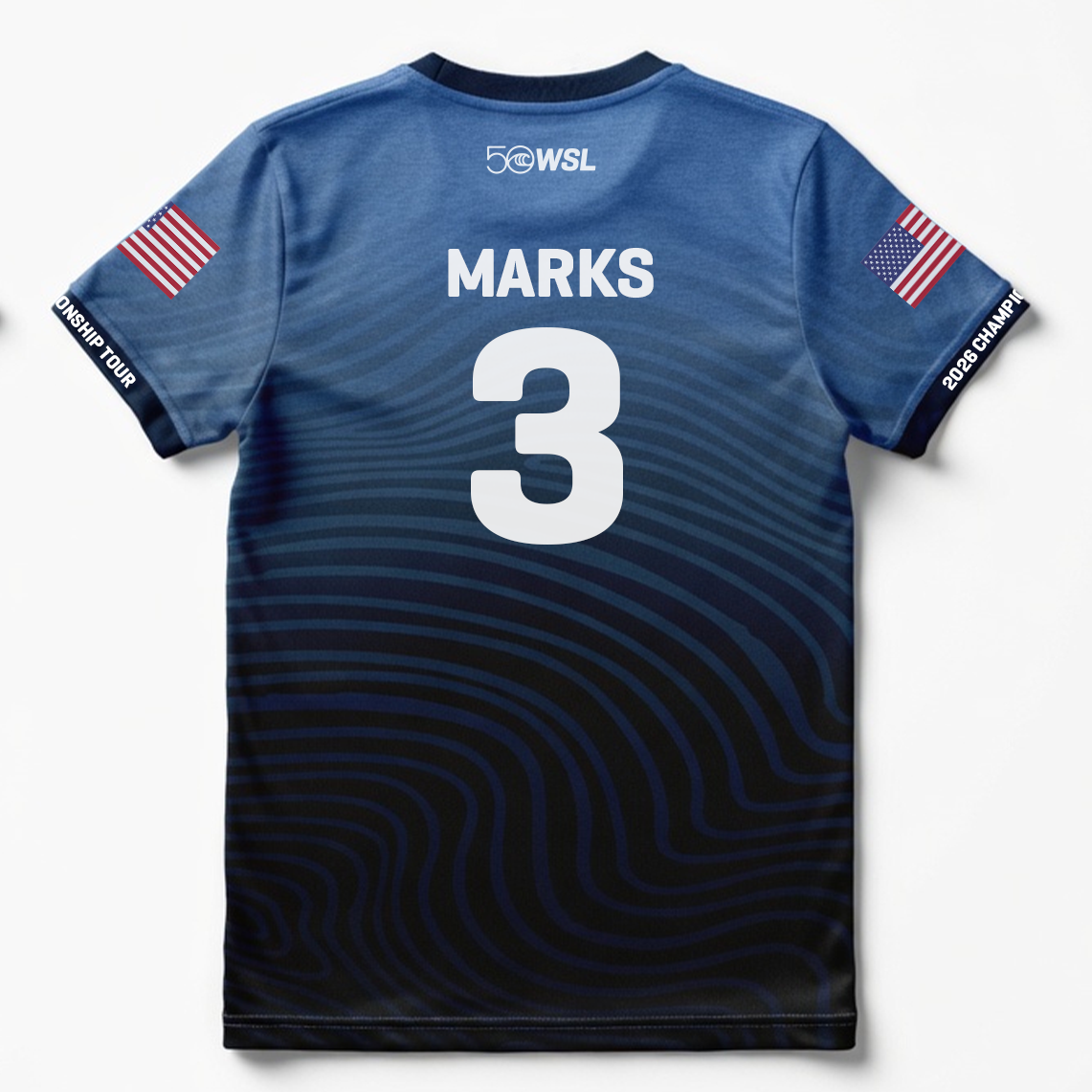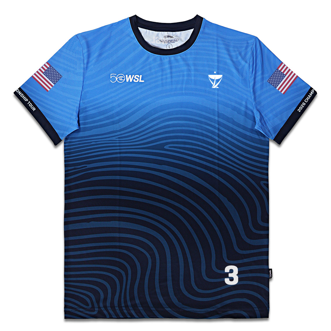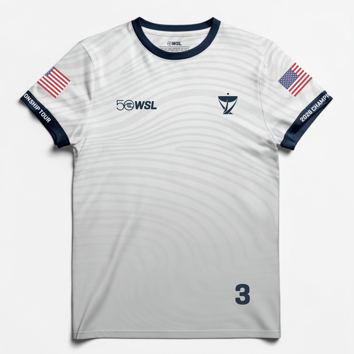 - Front graphic: WSL 50 anniversary logo and Championship Tour emblem