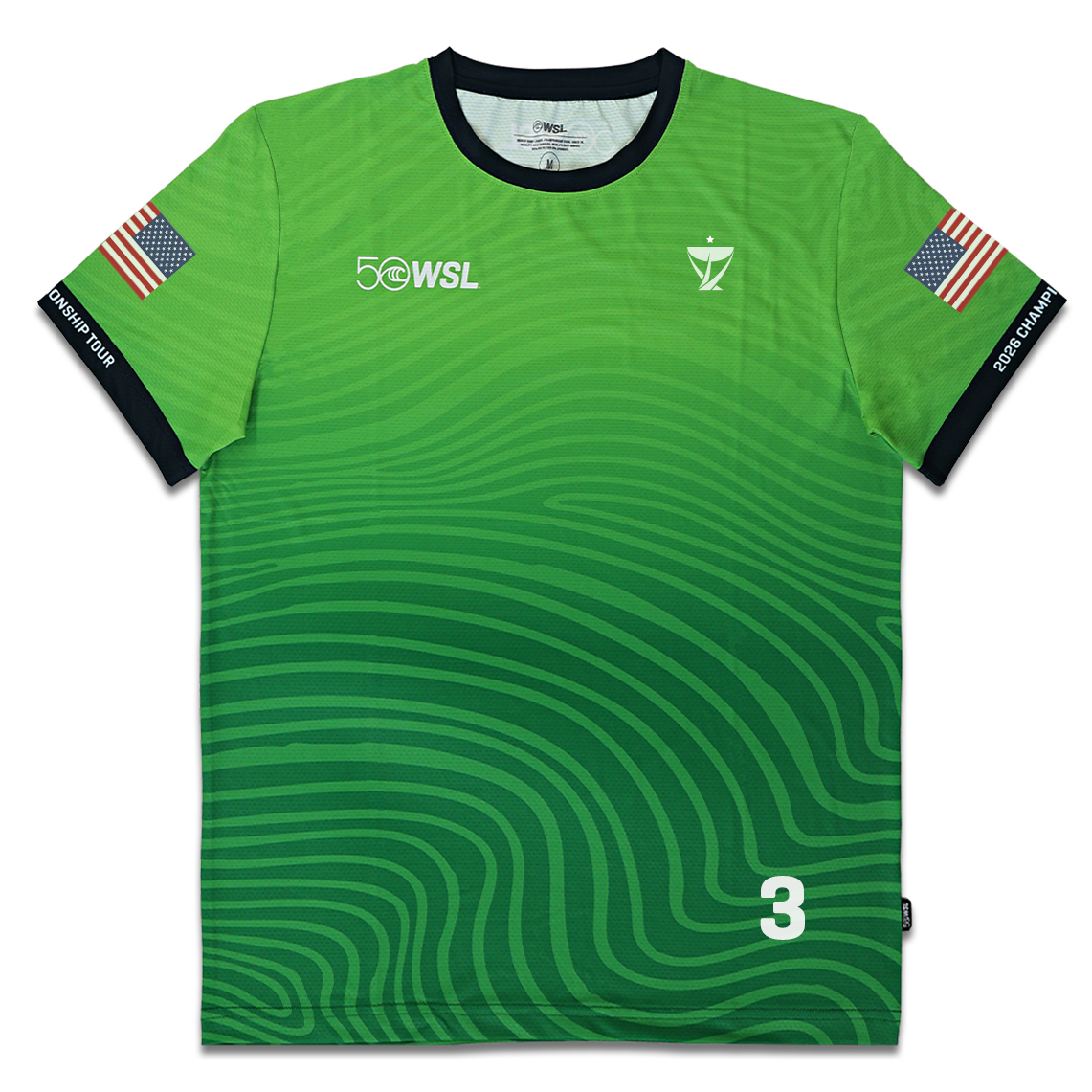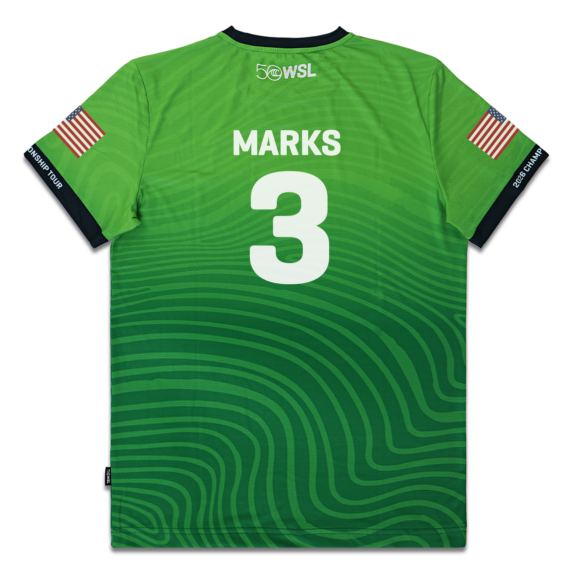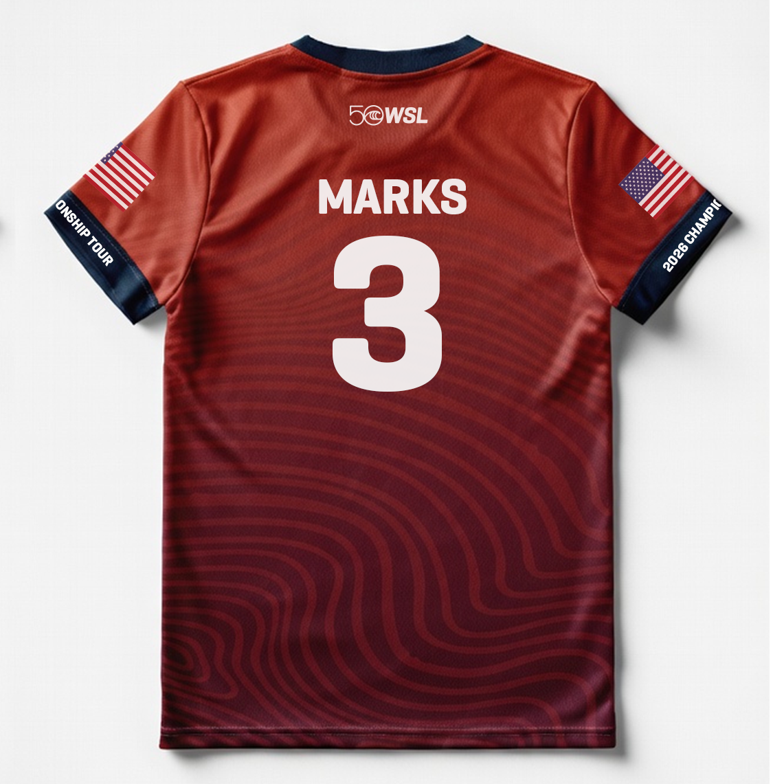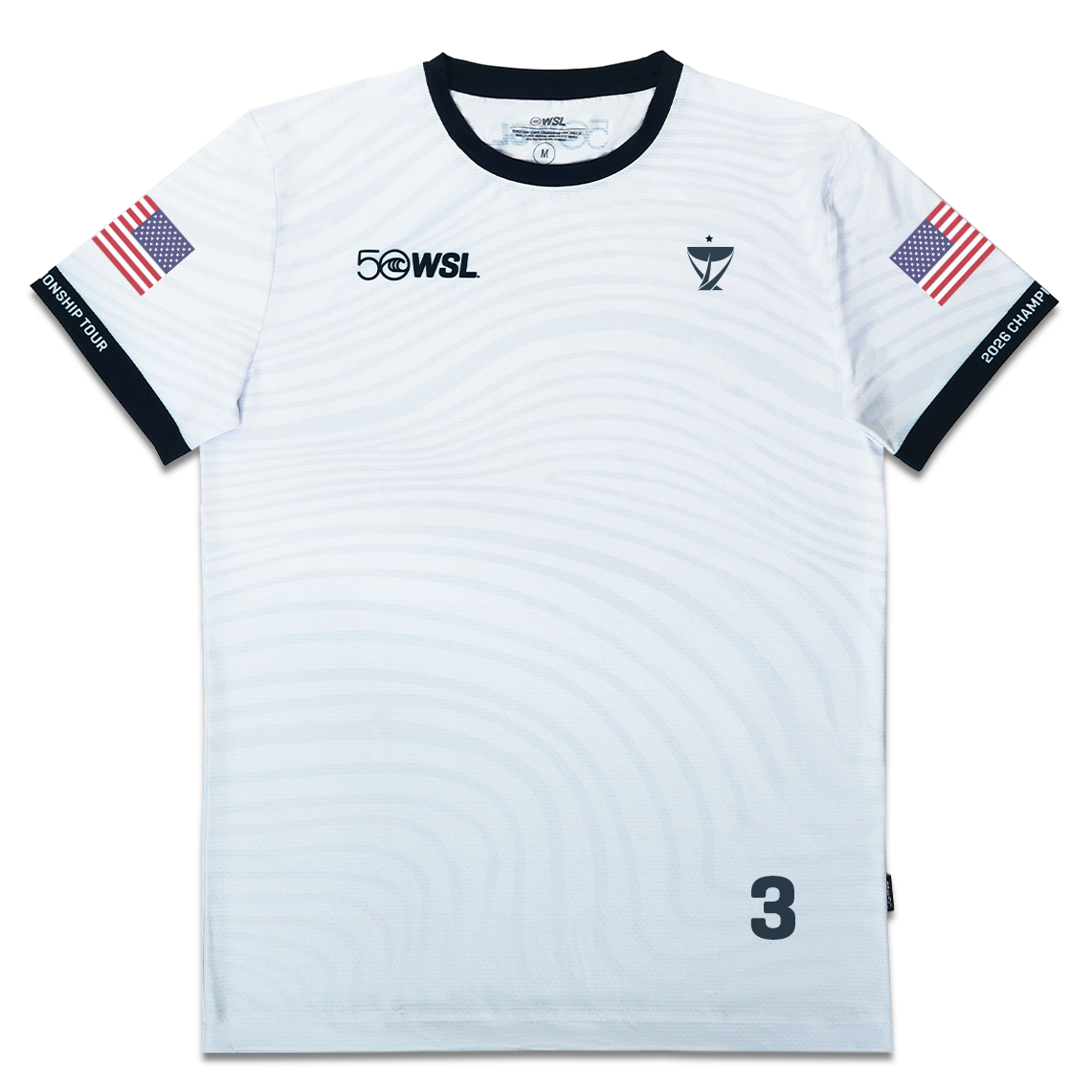 - Front graphic: WSL 50 anniversary logo and Championship Tour emblem