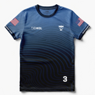 - Back graphic: athlete name and competition number