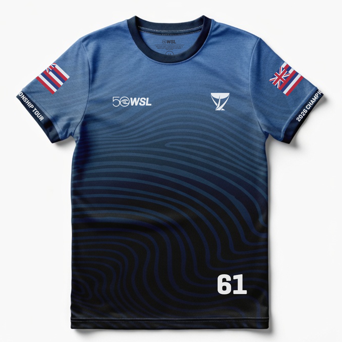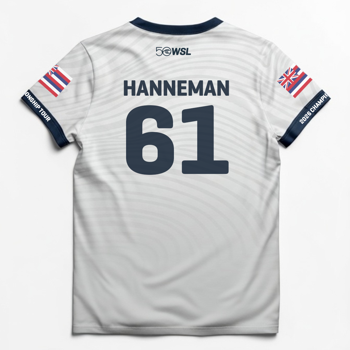 - Front graphic: WSL 50 anniversary logo and Championship Tour emblem