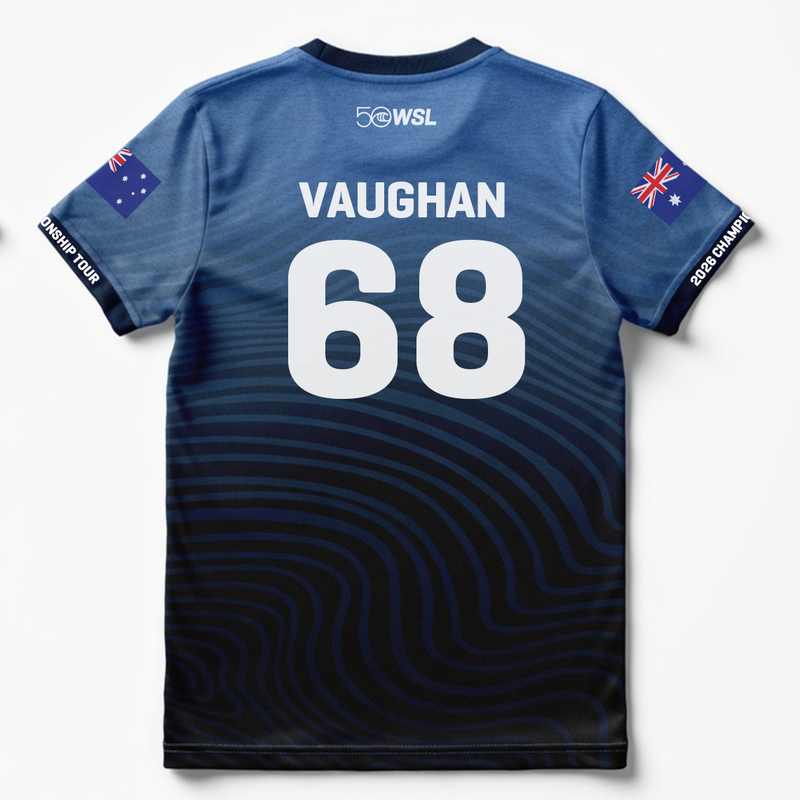 Support Joel Vaughan with the Joel Vaughan 2026 Official Jersey, part of the official 2026 Championship Tour celebrating 50 years of WSL.
