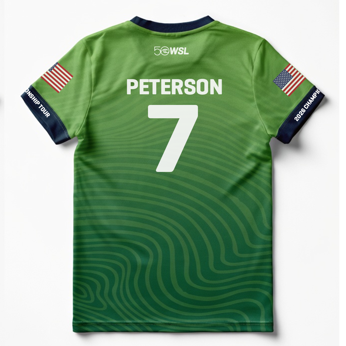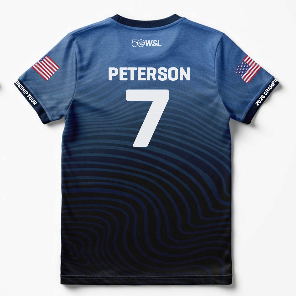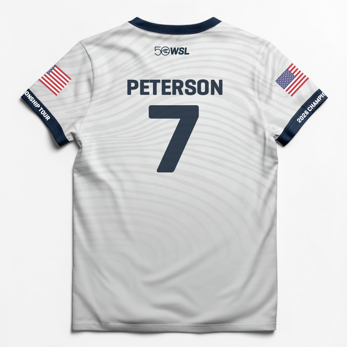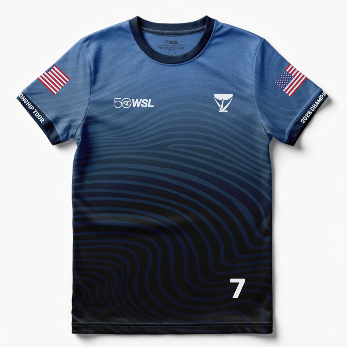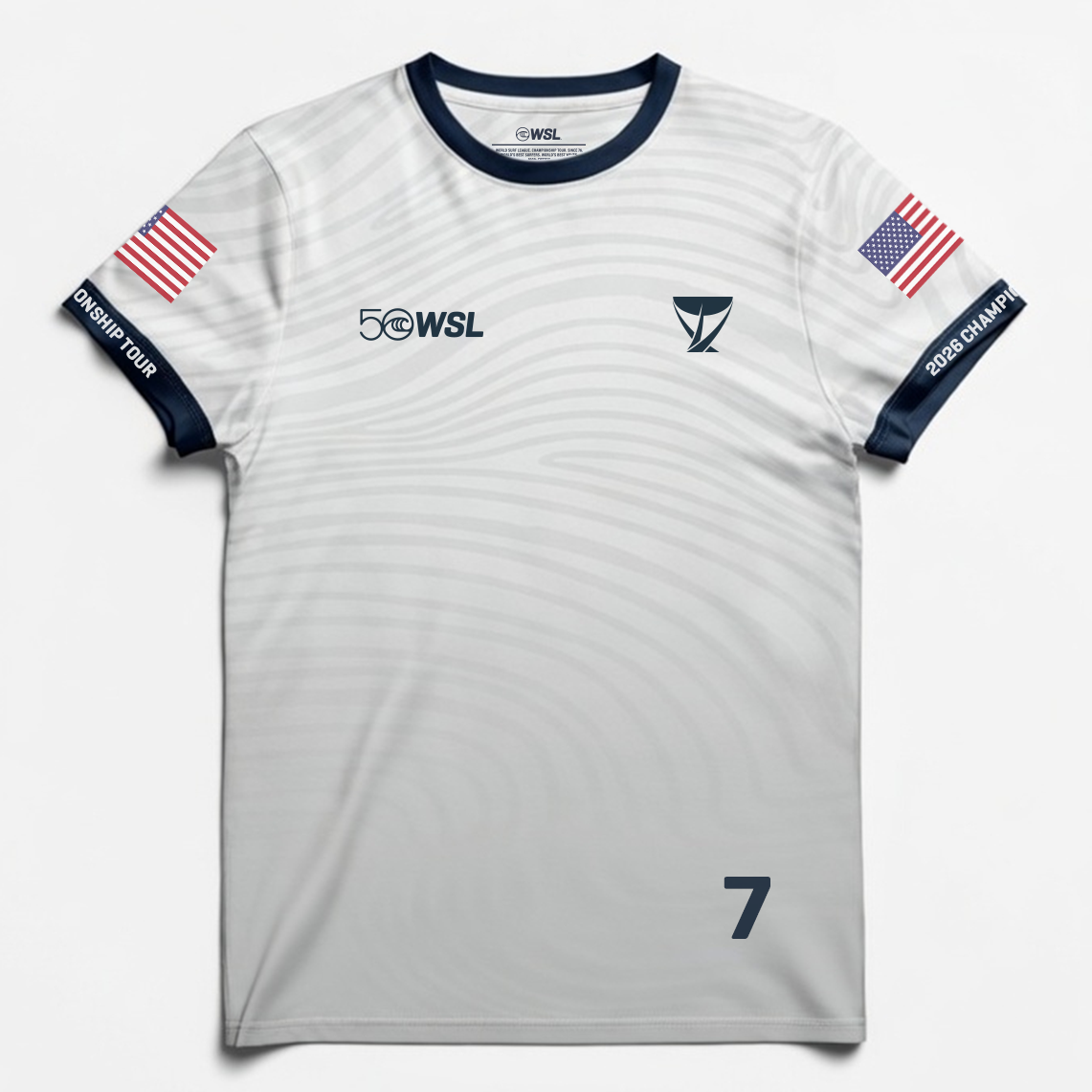 - Front graphic: WSL 50 anniversary logo and Championship Tour emblem