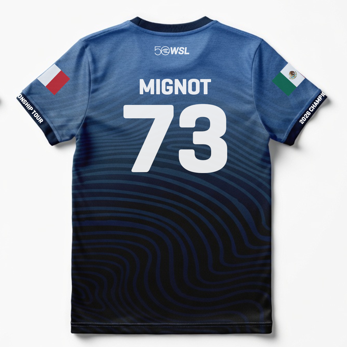 Support Marco Mignot with the Marco Mignot 2026 Official Jersey for Kids, part of the official 2026 Championship Tour celebrating 50 years of WSL.
