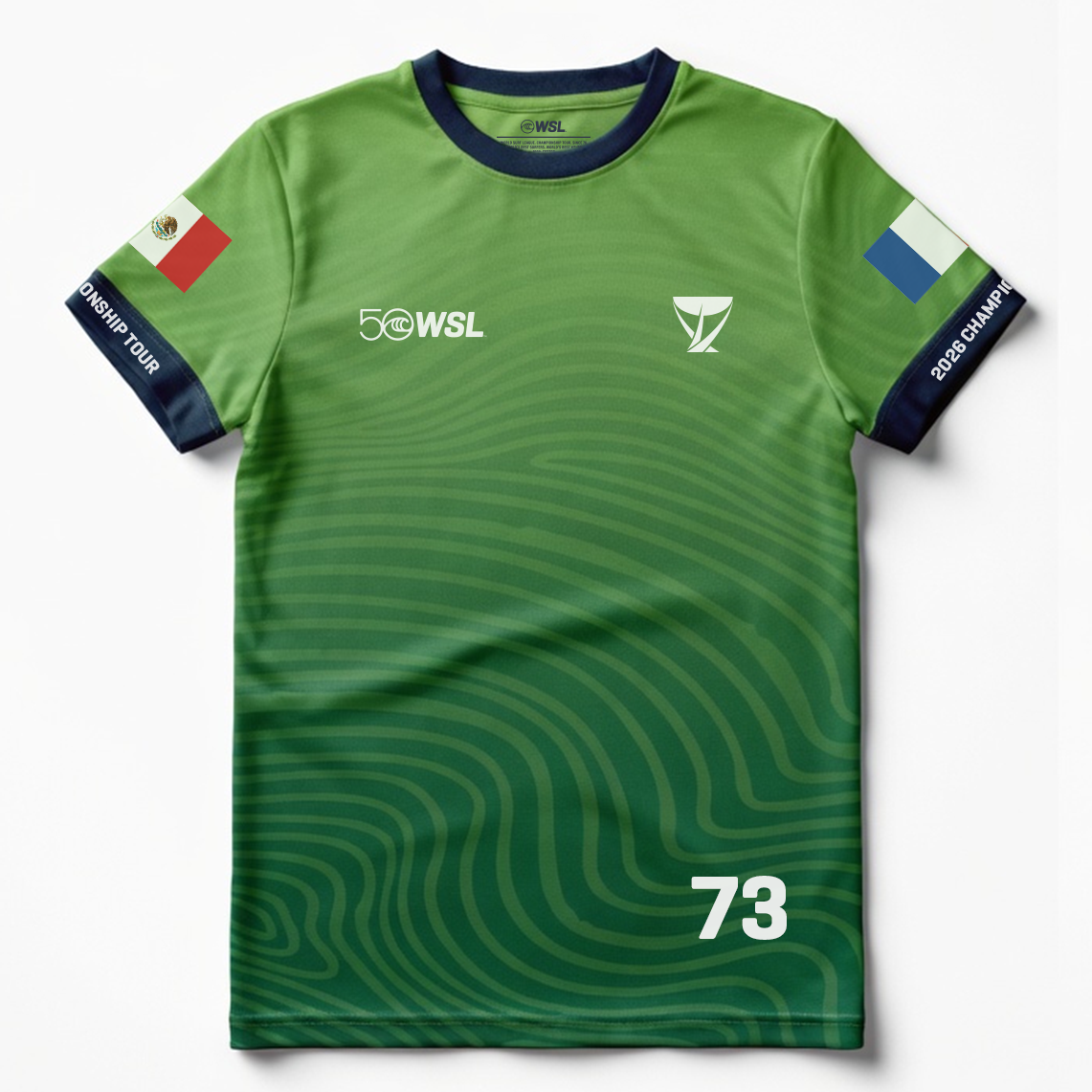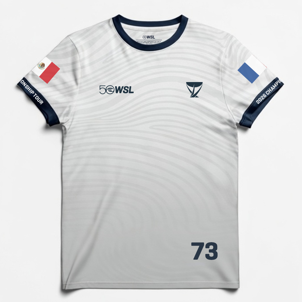 - Front graphic: WSL 50 anniversary logo and Championship Tour emblem