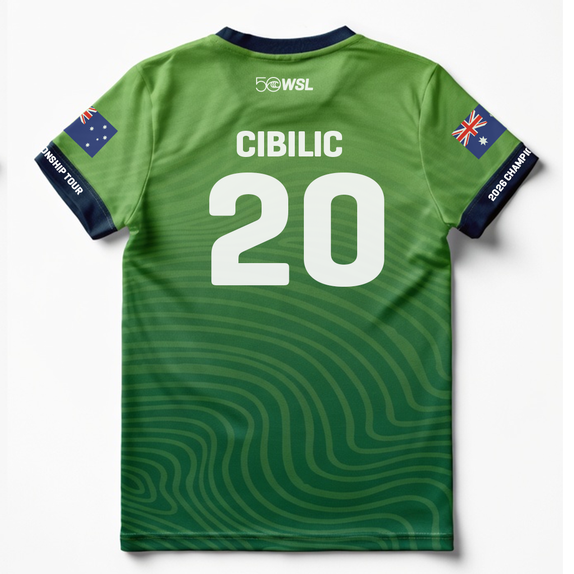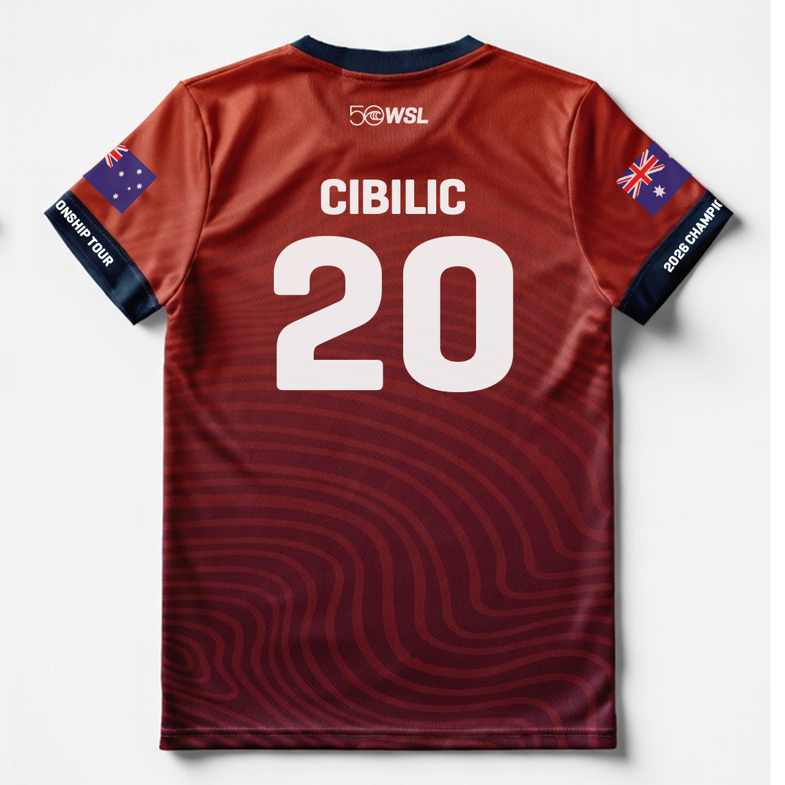 Support Morgan Cibillic with the Morgan Cibillic 2026 Official Jersey, part of the official 2026 Championship Tour celebrating 50 years of WSL.