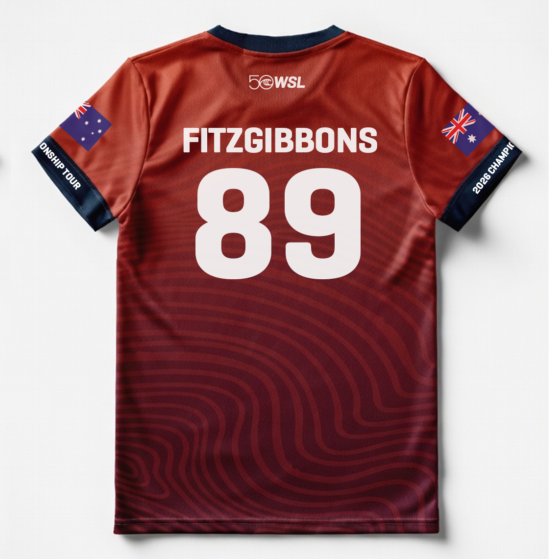 - Front graphic: WSL 50 anniversary logo and Championship Tour emblem