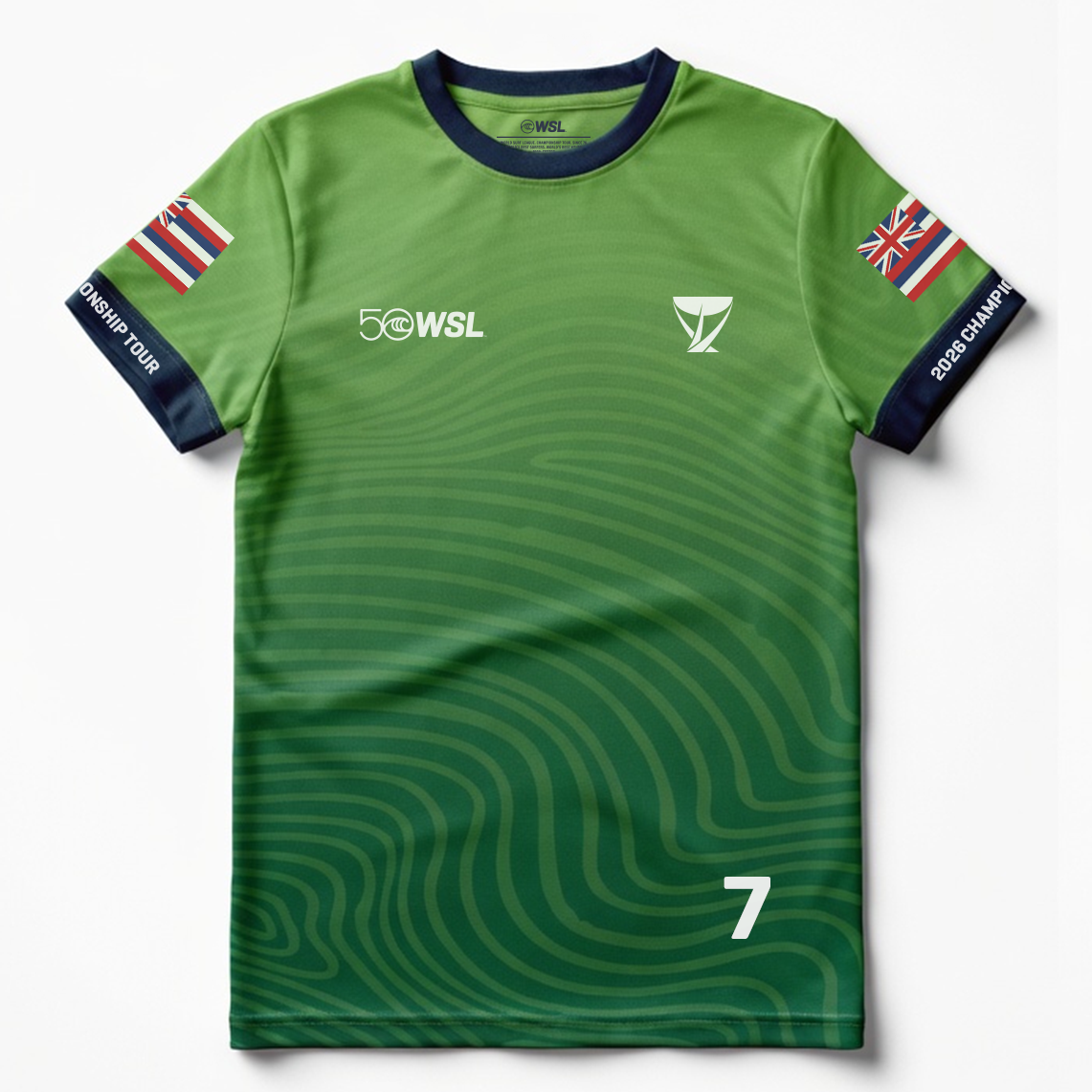 - Front graphic: WSL 50 anniversary logo and Championship Tour emblem
