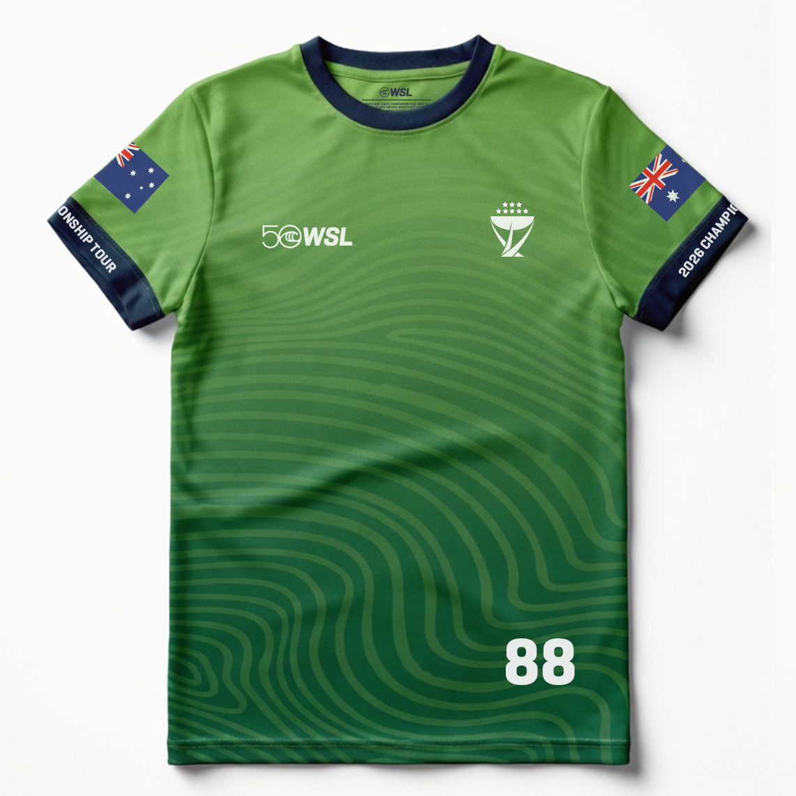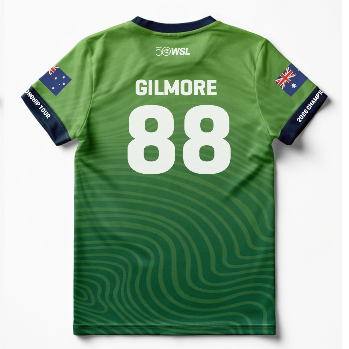 - Front graphic: WSL 50 anniversary logo and Championship Tour emblem