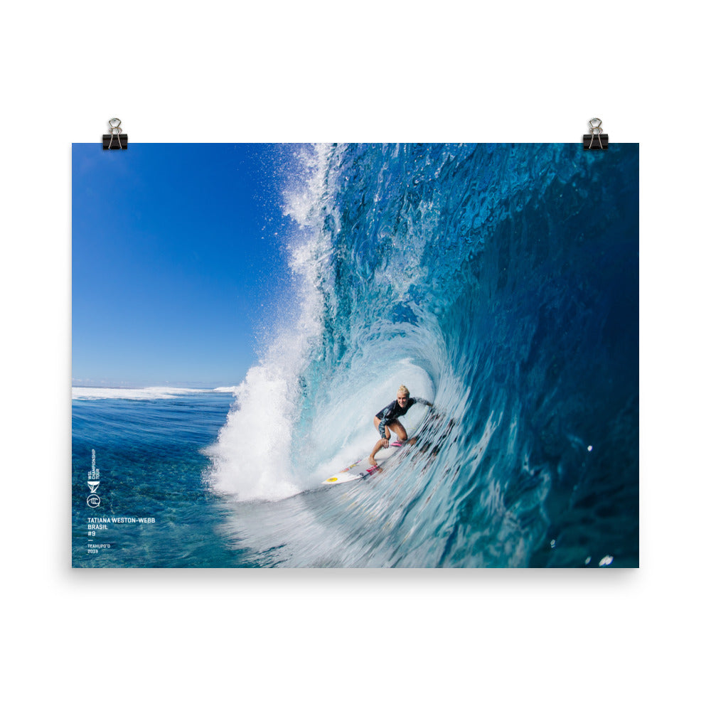Tatiana Weston-Webb in Tahiti, 2019. This 18" x 24" poster has a partly glossy, partly matte finish.