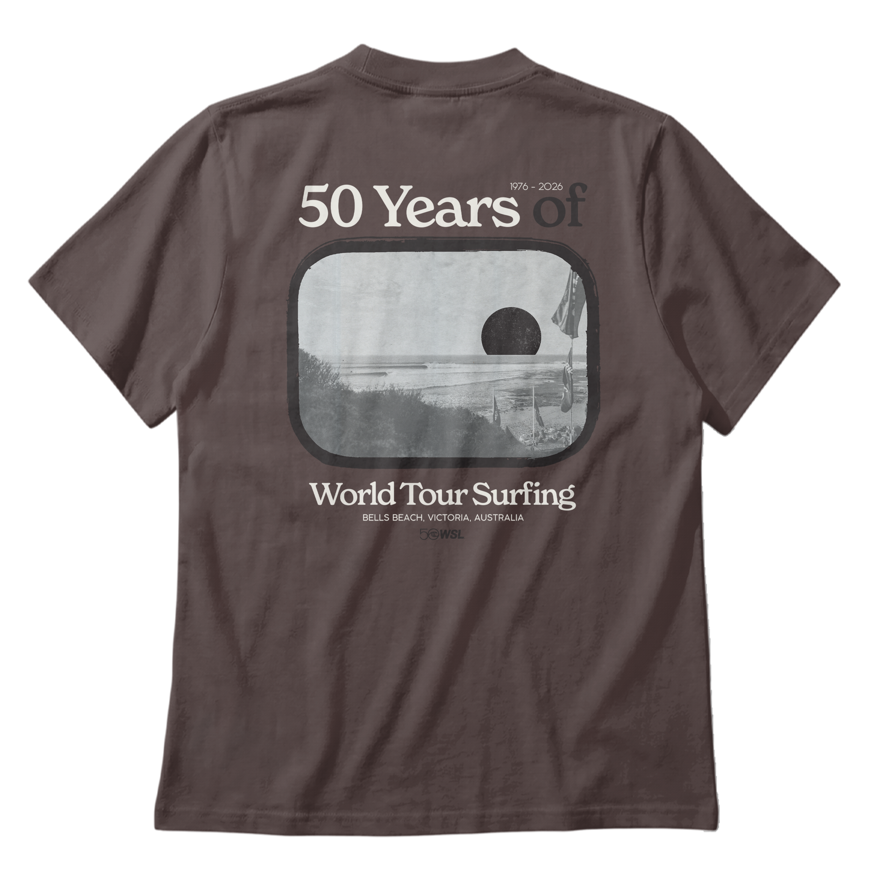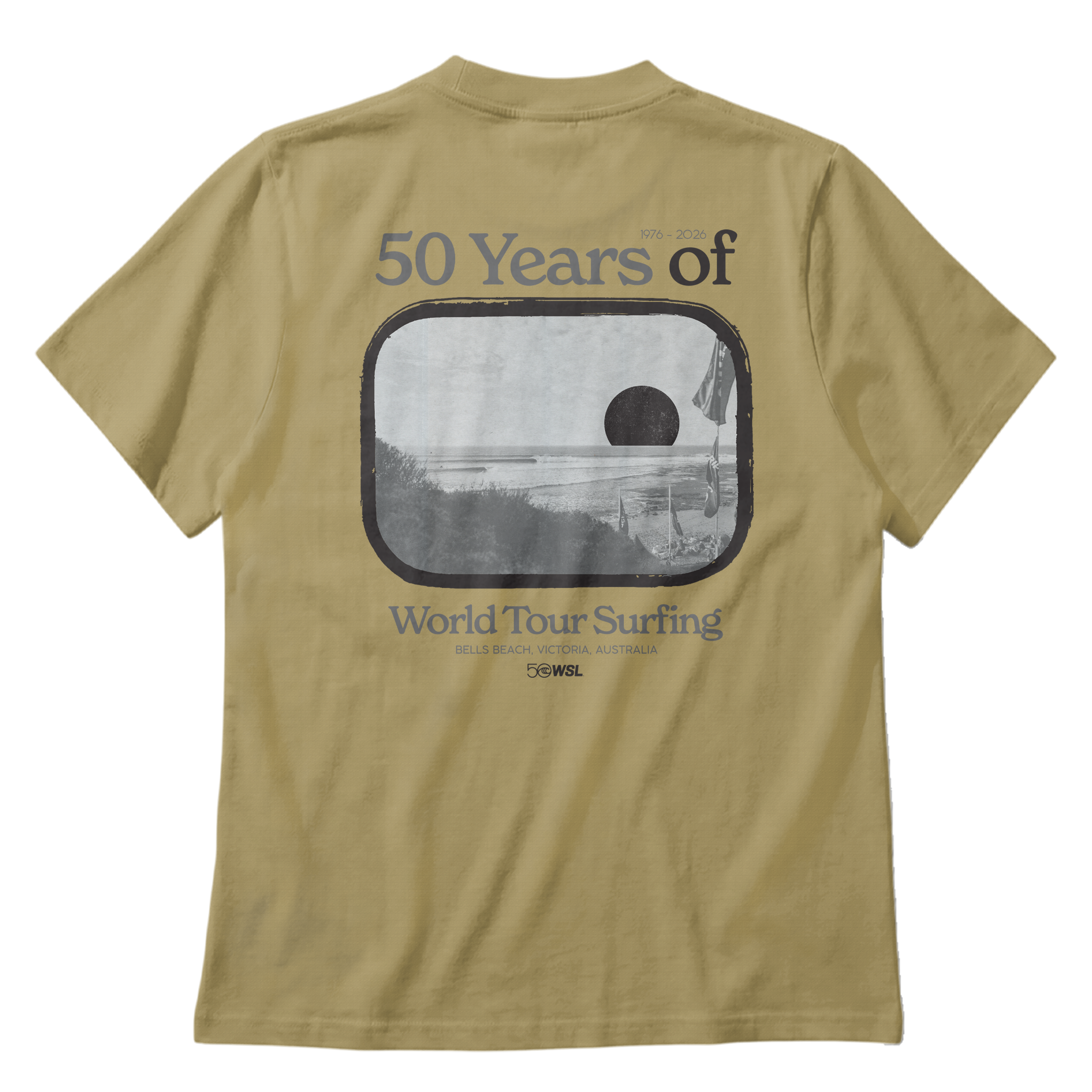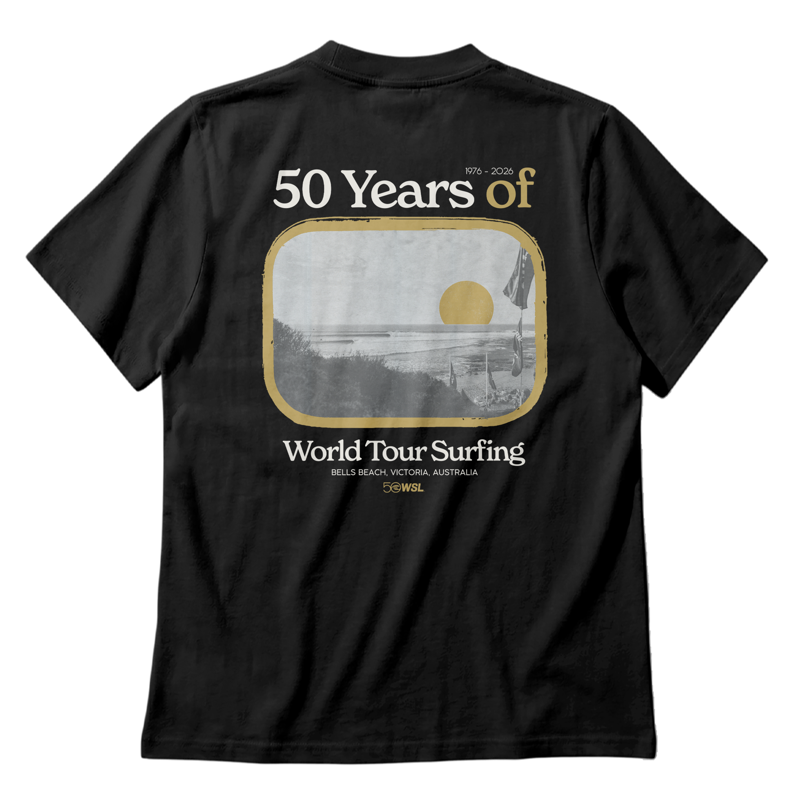 Celebrate WSL 50 with the WSL 50 Bells Beach Vintage Tee, part of the official World Surf League Championship Tour 2026 collection.