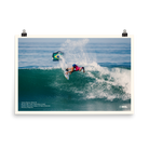 Tatiana Weston-Webb at the 2022 Rip Curl WSL Finals. This poster has a partly glossy, partly matte finish and is 24" x 36".