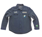 - Chest pockets with button flap pockets and an organic cotton yoke.