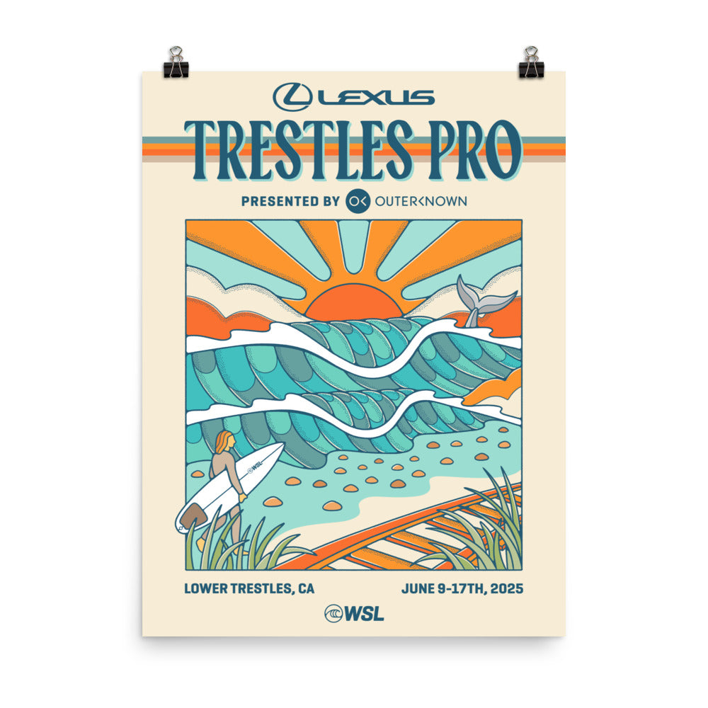 The 2025 Lexus Trestles Pro Official Poster has a partly glossy, partly matte finish.