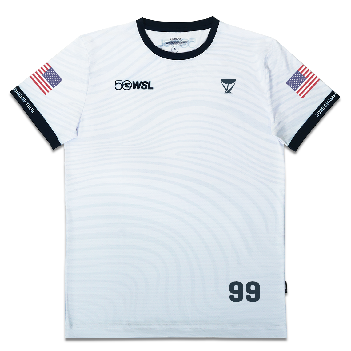 - Front graphic: WSL 50 anniversary logo and Championship Tour emblem
