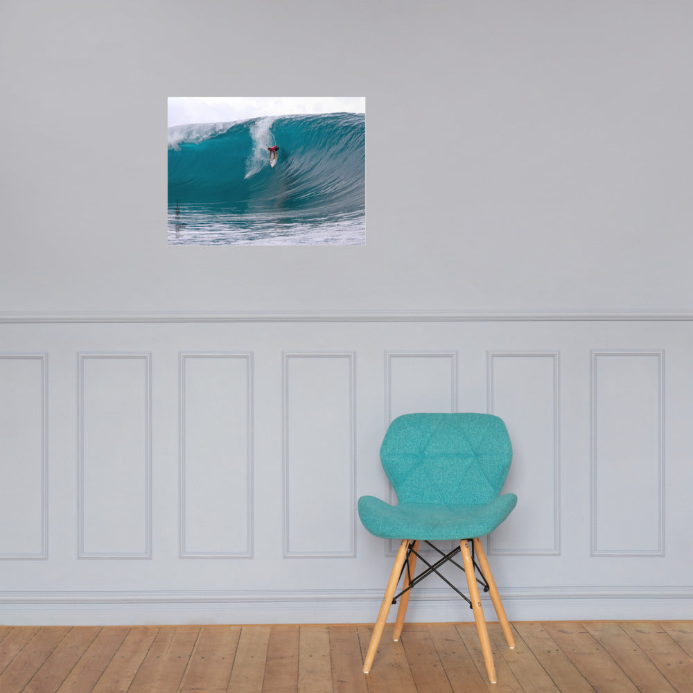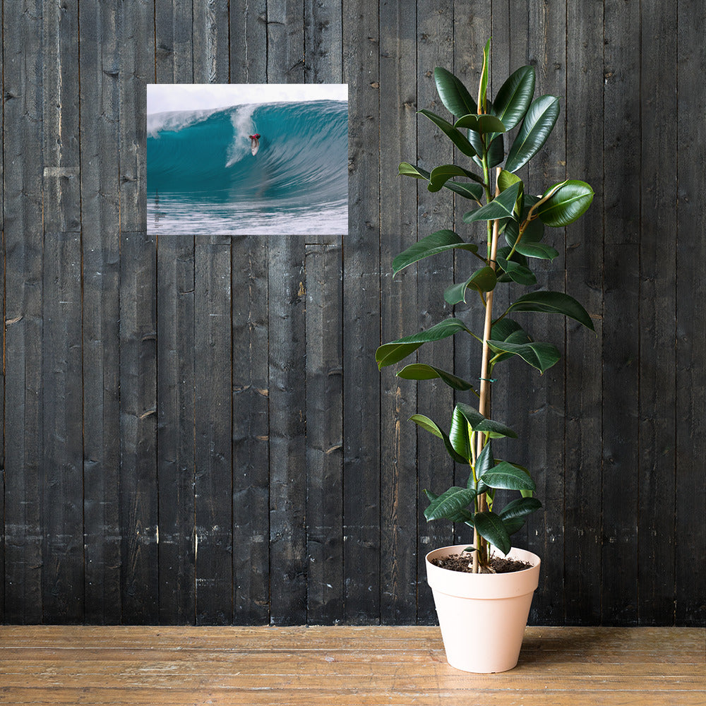 John John Florence no Billabong Pro Tahiti 2014. Este pôster de 18" x 24" tem um acabamento parcialmente brilhante e parcialmente fosco.
