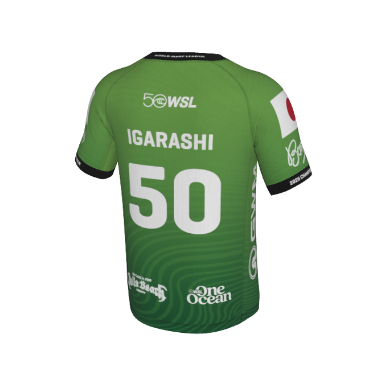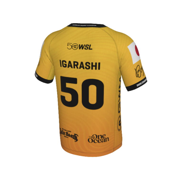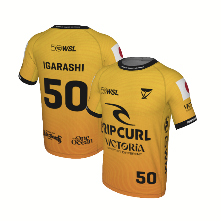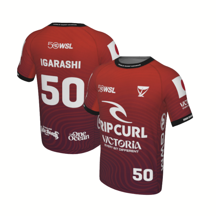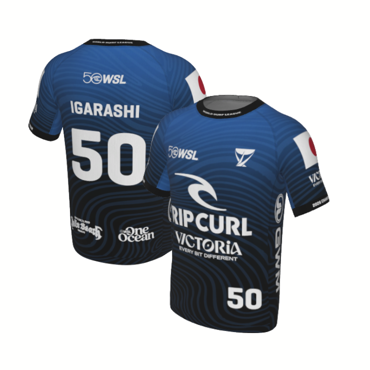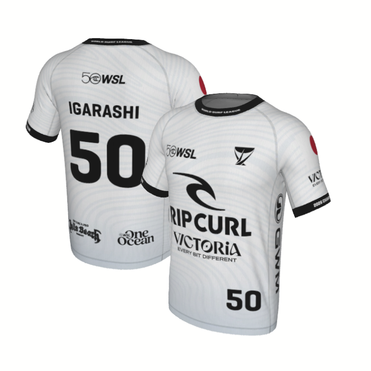 Support Kanoa Igarashi at the 2026 Rip Curl Pro Bells Beach with the official event jersey replica, part of the official 2026 Championship Tour celebrating 50 years of WSL.